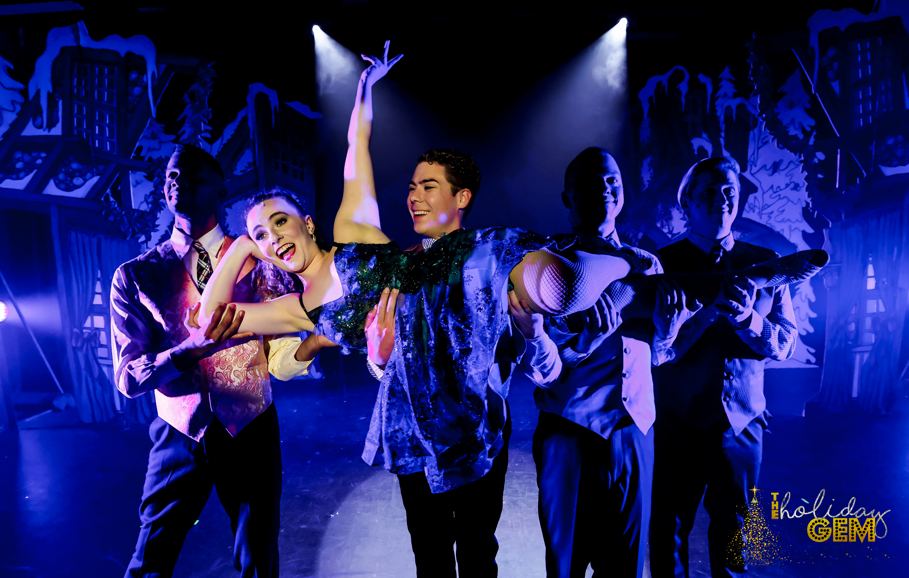 Presented by “One More Productions”, the award-winning resident musical theater company housed in the landmark “Gem Theatre” in Garden Grove California, this semi-annual Yuletide extravaganza is marking its eight-year anniversary! Directed by “One More Productions” Co-Founder Damien Lorton (who serves triple duty–likewise acting as the Musical Director, over and above appearing as ‘The One And Only” “Santa Claus”!) with a production this ‘joyful and triumphant’ it’s no wonder that the talents of FOUR Choreographers have been utilized. They are: Shauna Bradford, Angela Mattern, Kady Lawson and Heather Holt-Smith, and their diverse styles and dance specialties provide the goings-on with a nice variety of movement from start to finish.