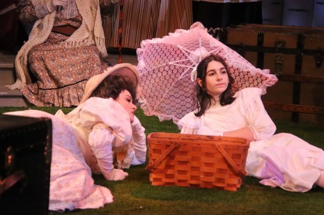 Enlisting the support of a predominantly female cast (with only two male actors) in several cases it employs cross-gender casting or simply re-envisions male characters into female ones. It needs to be noted though, that this tactic doesn’t always serve the material so efficaciously. Why? Too many of the ‘changes” merely play-out as gratuitous instead. As is also alluded to in the program notes, as a Director O’Connor had been “bothered immensely” by the perception that all these women developed by Sondheim Wheeler, Hal Prince (and even Ingmar Bergman,) were “strong, willful, broadminded, and complicated,” but who (regardless of the time period and its social mores,) “still left their fate in the hands of the men in their lives.” If you see your stage Heroines as ‘victims” that too, is not a good foundation to start from. Even stranger, if you then cast traditionally male roles with women—who then (given the demands of the text) act as their male/victimizers would, it’s just plain confusing. As regards to the (at times subtle, at others substantial) ‘Sapphic’ tone O’Connor has infused into the plot, for all his attempts at “woke modifications” one also can’t help but smile wryly in the observation that he has only managed to give his audiences a take on Sondheim as seen through the lens of Howard Stern: Tepid ‘titillation’ for titillations’ sake. Perhaps the biggest challenge O’Connor and company face with their ‘re-conception’ though, is that it runs in direct opposition to what the whole show is about in the first place! Bergman formulated his “Smiles Of A Summer Night” as a comedy of manners, which here instead, becomes a ‘comedy of genders’—not so much about the characters and their misadventures, but instead, more about WHO is playing them. What was intended from its inception to be an absurdist look at heterosexual relationships at the height of the “Belle Epoch” and the age-old ‘battle of the sexes”, just comes off as disjointed or incoherent. At best it is a mixed bag–occasionally brilliantly daring; at others it’s more of an impediment. Sad, because he has the makings of an honest-to-goodness “stand out” production. In fact, if anything, these directorial peculiarities only stand to remind us how strong and well-crafted the material is.