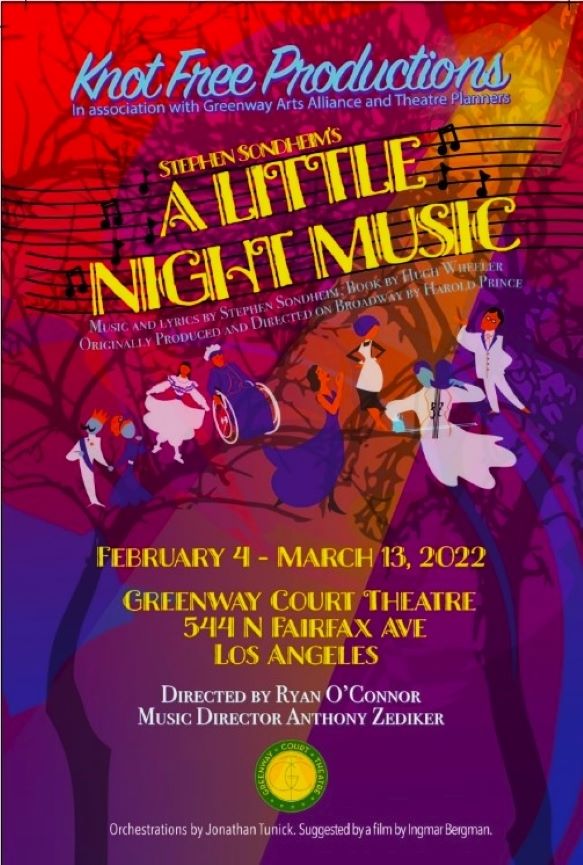 “Knot Free Productions” In Association With “Greenway Arts Alliance & Theatre Planners” Present “A Little Night Music”, February 4—March 13, 2022, At “The Greenway Court Theatre” 544 N. Fairfax Avenue, Los Angeles, CA. http://greenwaycourttheatre.org/