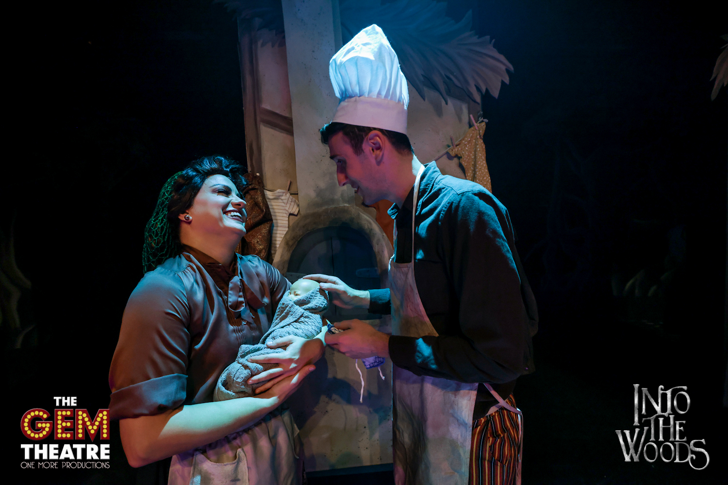 “I never thought I’d love my life (I would’ve settled for another)…then to beget a child–that fortune smiled, I’m so happy!” Nicole Cassesso as “The Bakers Wife” and Bryan Fraser as her ‘husband’ “The Baker”, celebrate their ‘little blessing’ in One More Productions’ 2022 Staging of “Into The Woods”