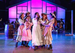 “Make up your mind, make up your mind, Laurey, Laurey dear Make up your own, make up your own story, Laurey dear. Ol’ Pharaoh’s daughter won’t tell you what to do–ask your heart-whatever it tells you will be true.” Erika Baldwin (Center) with the rest of the female ensemble In One More Productions’ 2023 Staging of Rodgers & Hammerstein’s “Oklahoma”