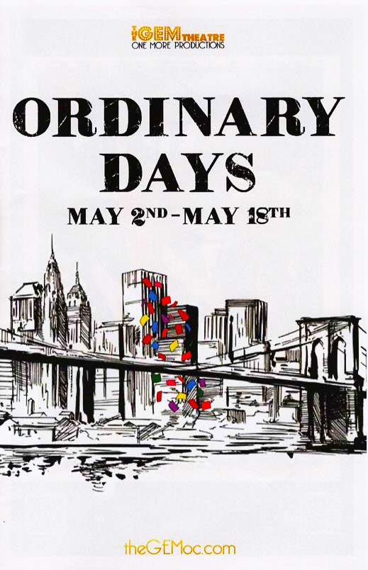 Production Photos by Ron Lyon www.ronlyonphoto.com Courtesy of “One More Productions” www.theGEMoc.com ; Special Thanks to Damien Lorton, Nicole Cassesso, Dan Baird, Victor Crisafulli, Ron Lyon, Julia Johnston and to the cast and crew of “One More Productions” 2025 Production of “Ordinary Days” for making this story possible.